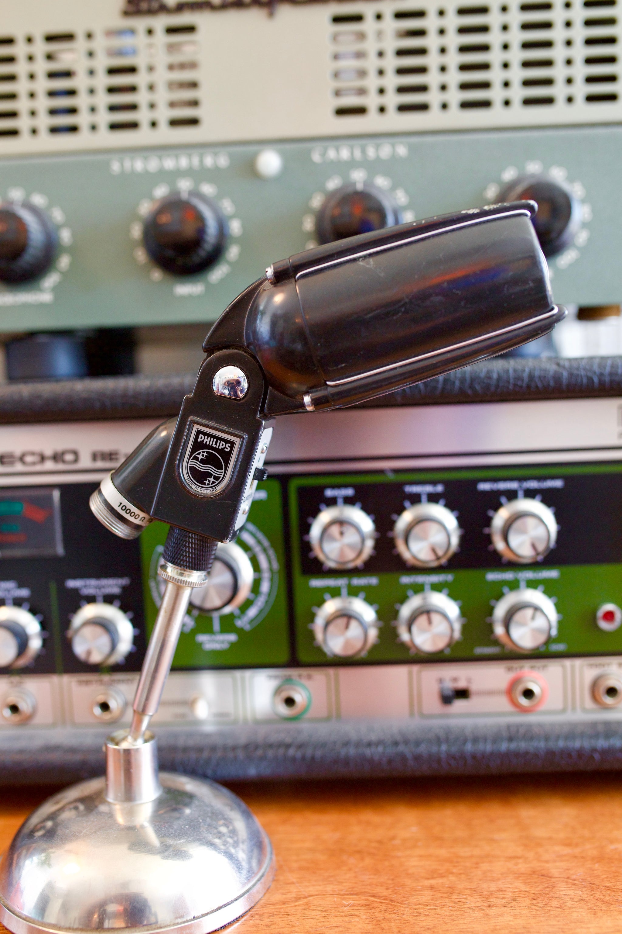 Here's a Philips EL6021 Dynamic Microphone from the 1960's! Philips made many different variations of microphone in Holland during the 50's and 60's. Many of their early dynamic microphones were made with very high quality, and this EL6021 is no exception. These microphones have a detailed mid-range + high end that achieve natural results on drums, acoustic guitars, etc. If you've been looking for a microphone that doesn't get too boomy yet still sounds full of character, this is the microphone for you! This microphone is in great shape for its age, and has its original connector with a new XLR cable and standard stand adapter. Grab this futuristic looking microphone from Philips!