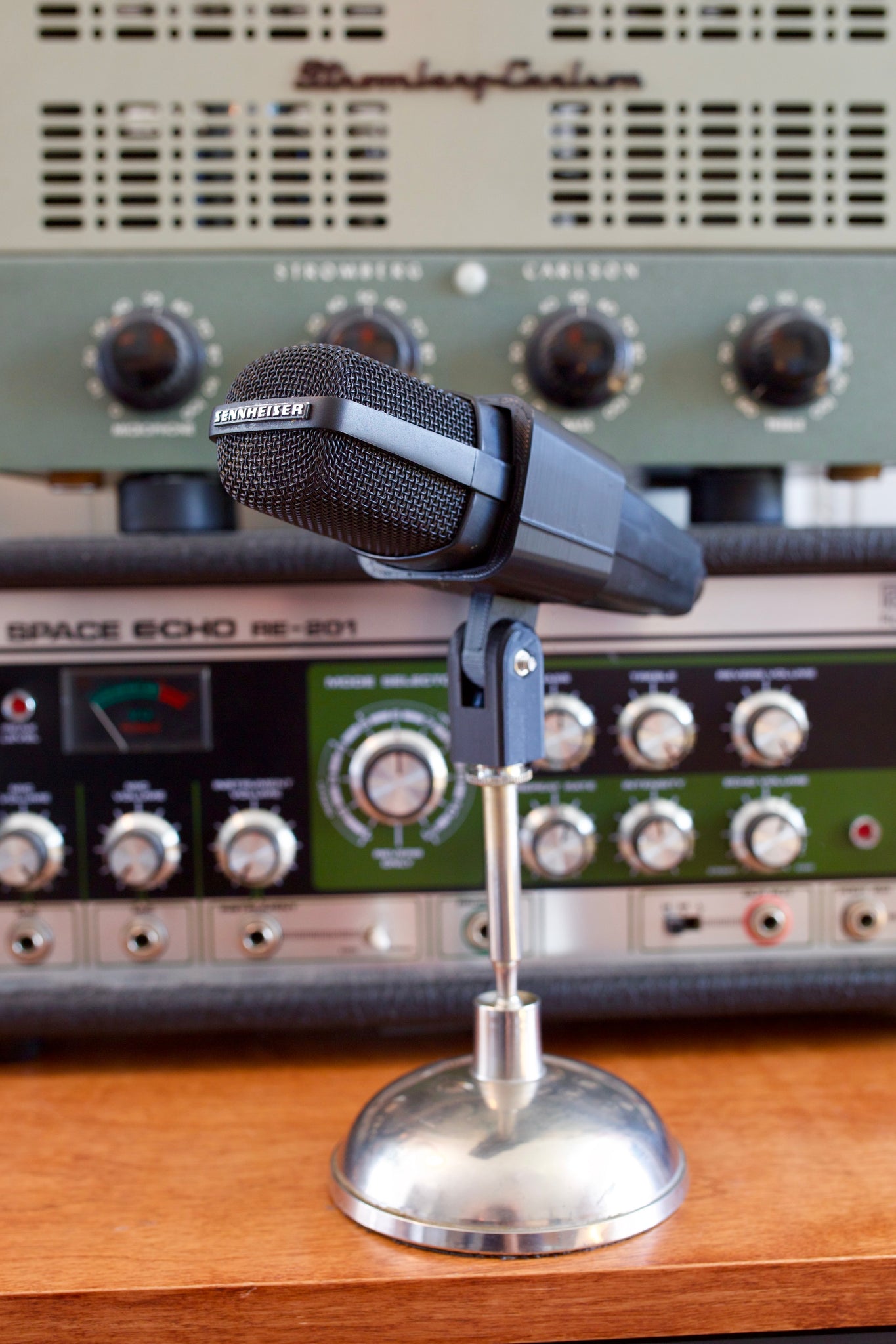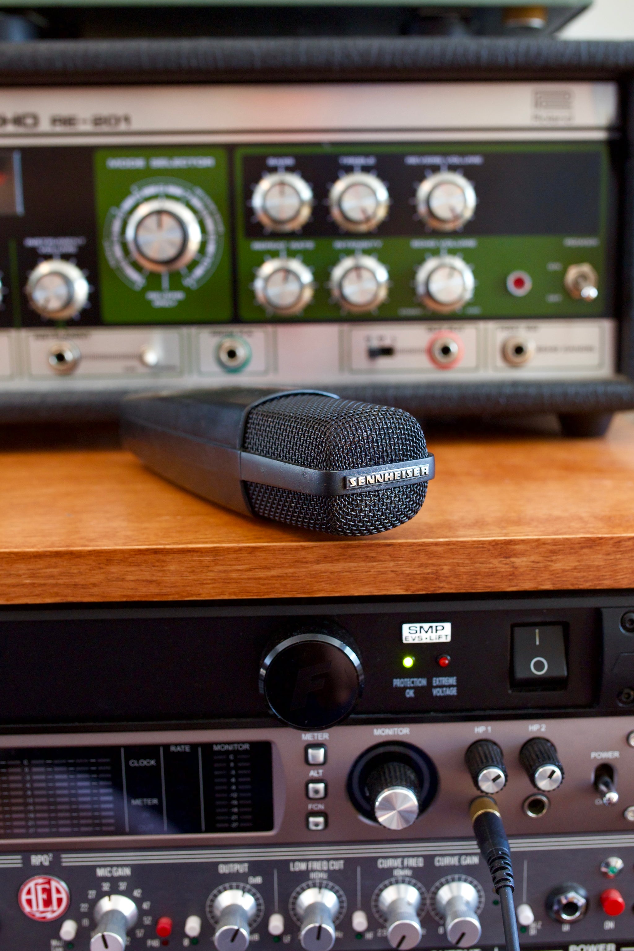Here's a Sennheiser BlackFire 521 Dynamic Microphone from the 1990's! Sennheiser's "BlackFire" line was a marketing strategy used by Sennheiser for sleek and simple designs with a matte black finish for broadcasting uses. The 521 is exactly the same as a MD421 except it lacks a bass roll-off switch. The 421 has been used since the 1960's for vocals, guitar amps, toms, other drum uses, etc. The classic microphones have stood the test of time and work great for a variety of different studio uses. This 521 is a clean example and works perfectly with its full frequency response. A non-original mount will be included! Grab this 521 "BlackFire" version of the classic MD421 from Sennheiser!