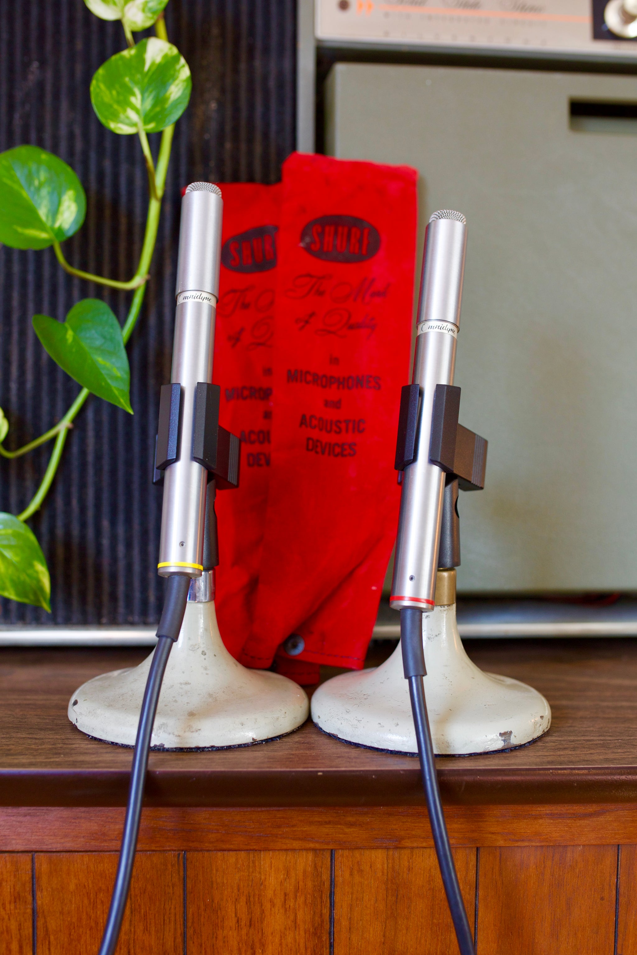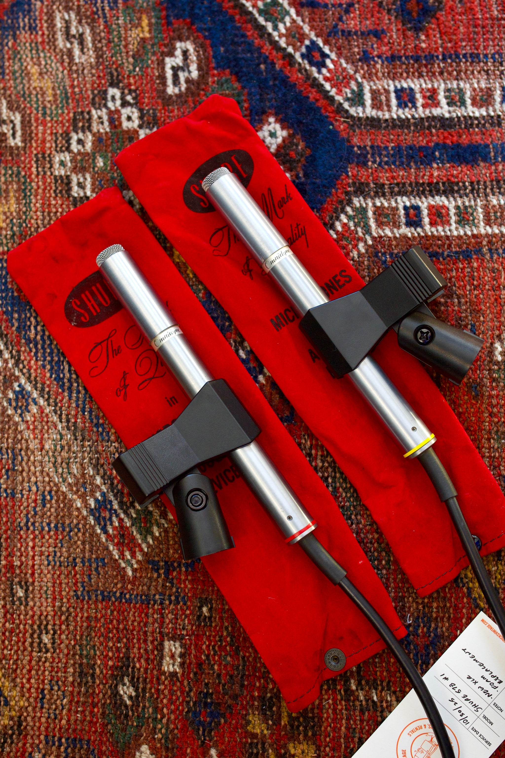 Here's a pair of Shure 578 Dynamic Microphones from the 1960's! These omni-directional dynamics were made for everyday PA and other broadcasting uses. These are well build omni microphones with a smooth sound that works perfectly for drum overheads and acoustic instruments. If you've been looking for a unique omni microphone at a great price, this is the microphone for you. All of these are in excellent condition and working perfectly with new cables to XLR (wired for low impedance). Grab one of these underrated 578's from Shure!