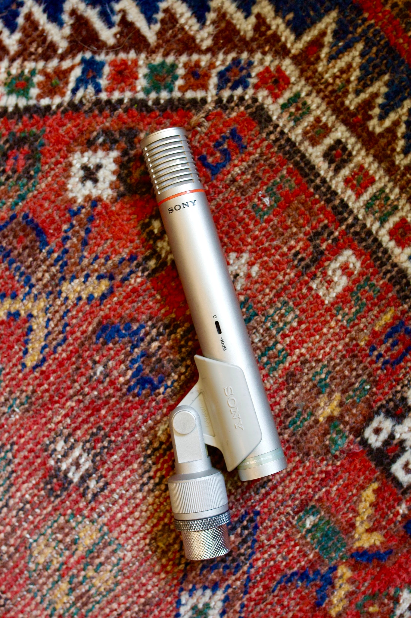 Here's a Sony C-535P Condenser Microphone from the 1980's! These high quality small diaphragm condenser microphones were made for studio uses. Often compared with the Neumann KM84, the C-535P is a great option if you're looking for a similar sound on a budget. The C-535P doesn't have the same high end sparkle of the KM84, but has a very natural and authentic sound. This C-535P is in near perfect condition with its original clip. Grab this lesser-known condenser option from Sony!